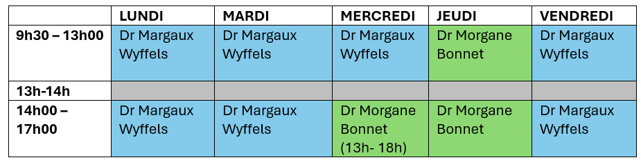 We 22/10 et 29/10 : Dr Wyffels will be there the whole day